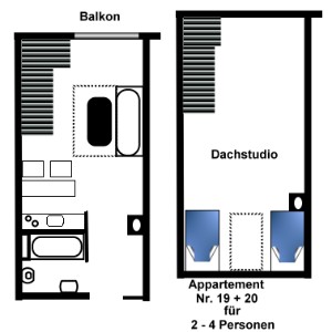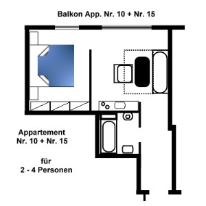 Kinder bis 10 Jahre wohnen im Appartement der Eltern frei.
